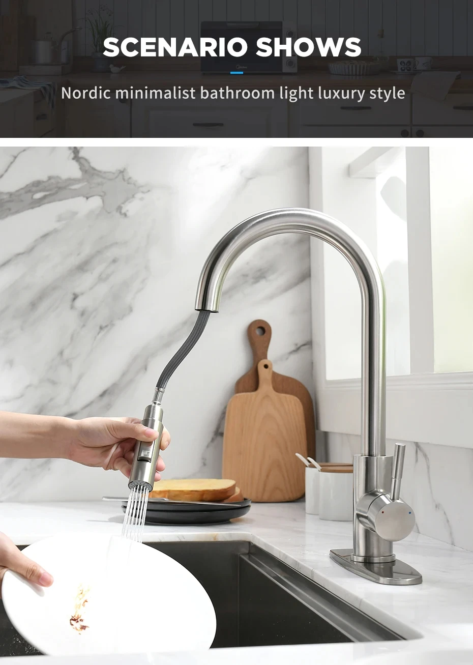 • Pull-Out Design: Enjoy flexibility with the convenient pull-out feature, making it easier to wash dishes, clean fruits, or rinse your sink without hassle.
